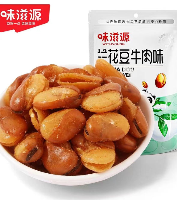 Indulge in the savory and satisfying taste of Beef Flavored Fava Beans. This 120g pack offers a delightful combination of tender fava beans and rich beef flavoring. Each bean is carefully coated with a savory...